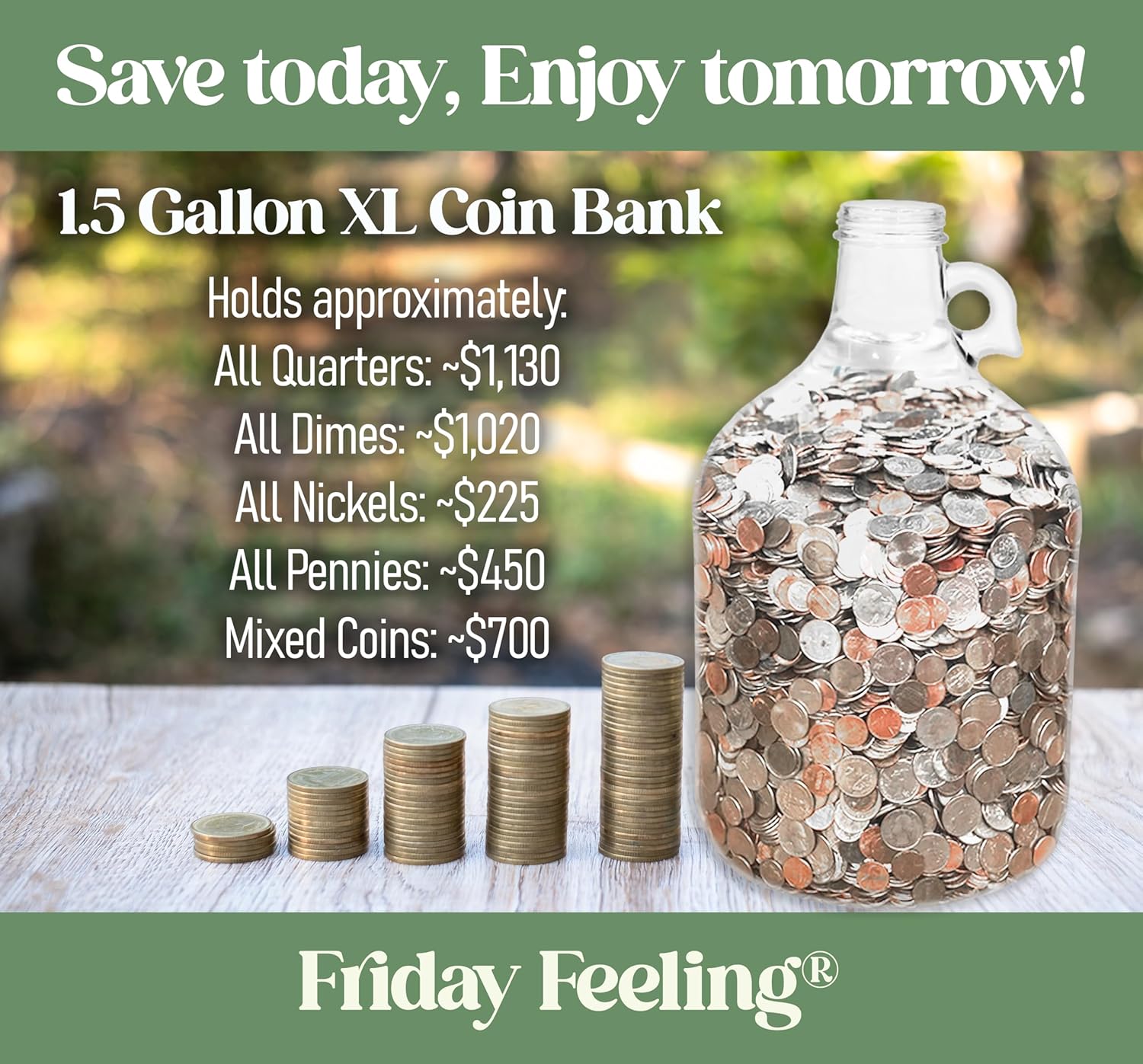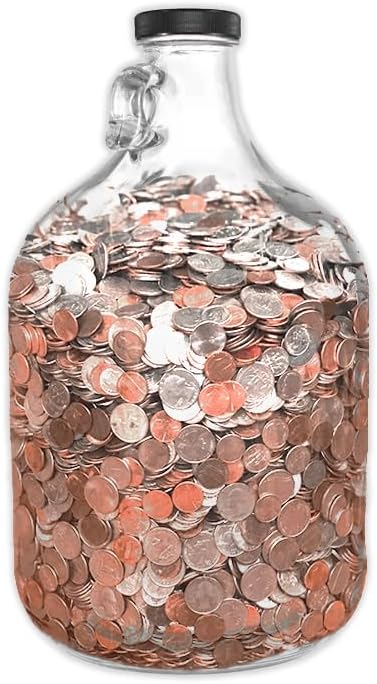 - EXTRA LARGE CAPACITY: Extra large glass jar perfect for collecting coins, bills, and spare change with a secure screw-top lid for safekeeping