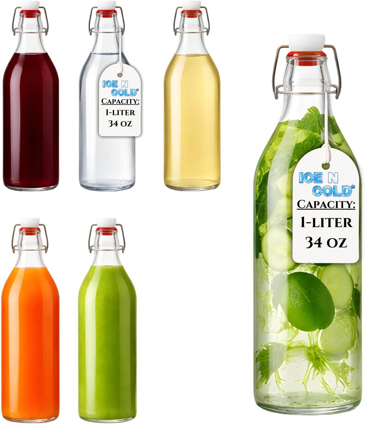 🔒 Airtight Flip-Top Closure Each bottle features a swing-top cap with a food-safe gasket that helps create a tight seal to reduce leaks and help preserve freshness.
